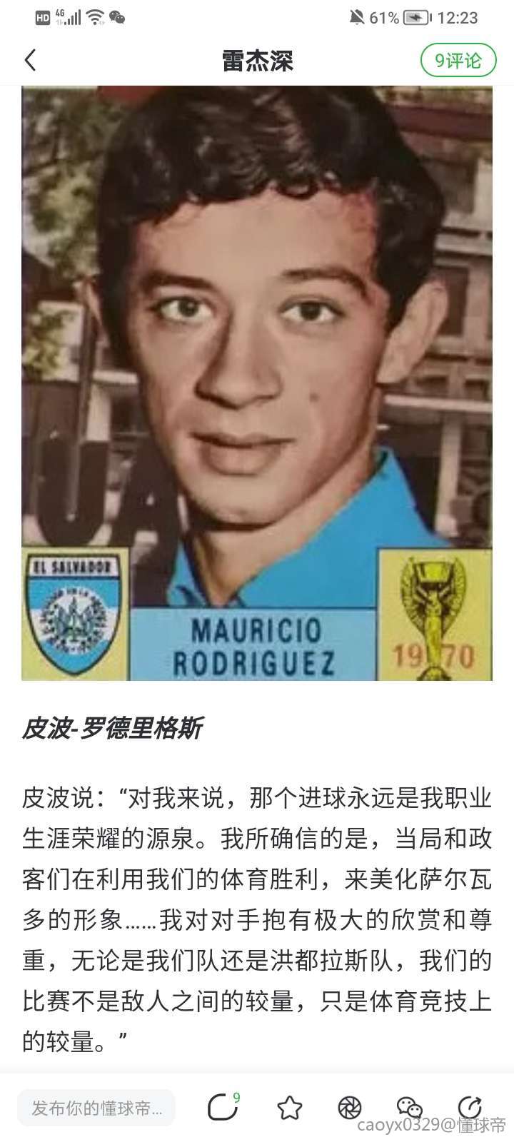 迄今为止,很多萨尔瓦多球迷都把在预选赛里对阵洪都拉斯打进制胜球的皮波-罗德里格斯当作英雄。这不仅是因为皮波的进球帮助球队接近了世界杯,更是因为在“足球战争”的背景下,皮波帮助萨尔瓦多“先赢了一场”。但是,皮波回忆起那个进球的时候,他的记忆里并没有仇恨。