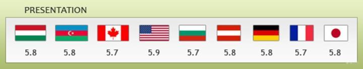 对于大型比赛,每个环节通常由九名裁判组成评审团,人数可以少于九人,但不得少于三人。他们“完全专注于评估每个动作的质量(技术分)和表演的质量(节目分)”。