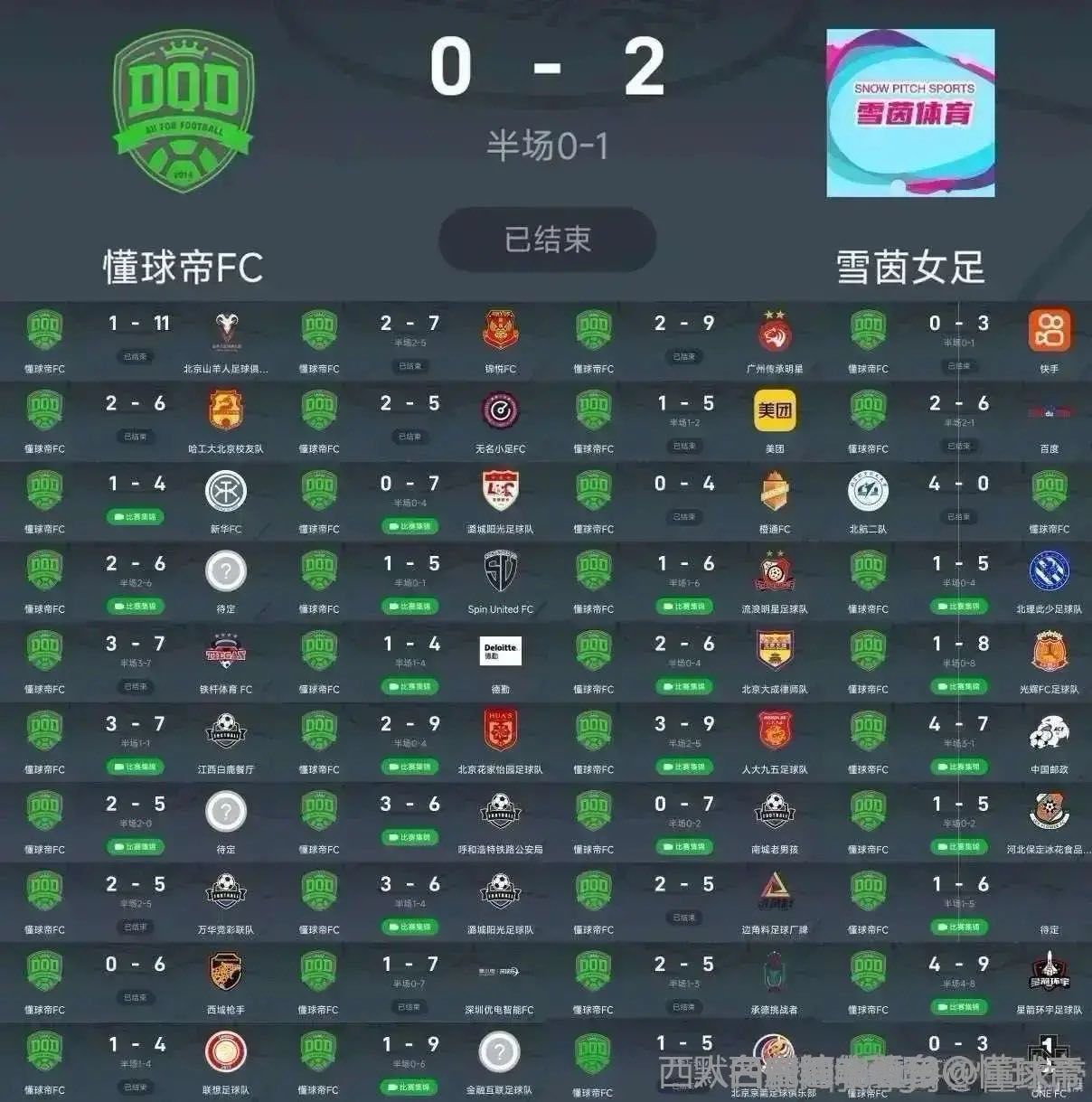 为什么不详细写一下懂球帝fc星期四的过程,比如2-9,1-6之类的