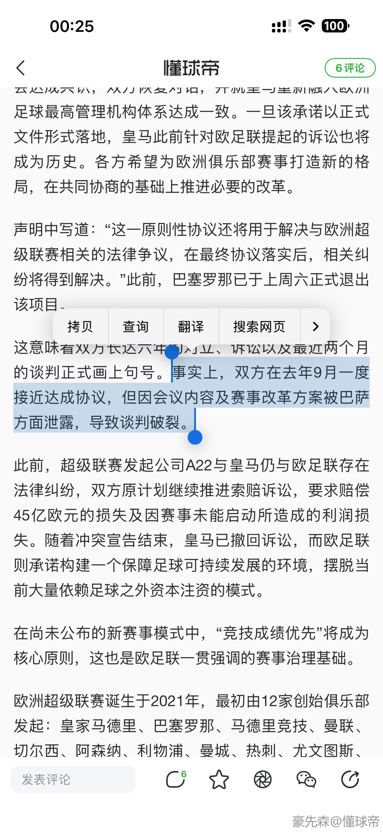2月11日,《阿斯报》表示,皇家马德里发布的官方声明,实际上宣告了持续近六年的欧洲超级联赛项目正式落幕。随着皇马与欧足联、欧洲足球俱乐部协会(EFC,原ECA)达成原则性协议,欧洲足坛围绕欧超所产生的对立与纷争画上句号。