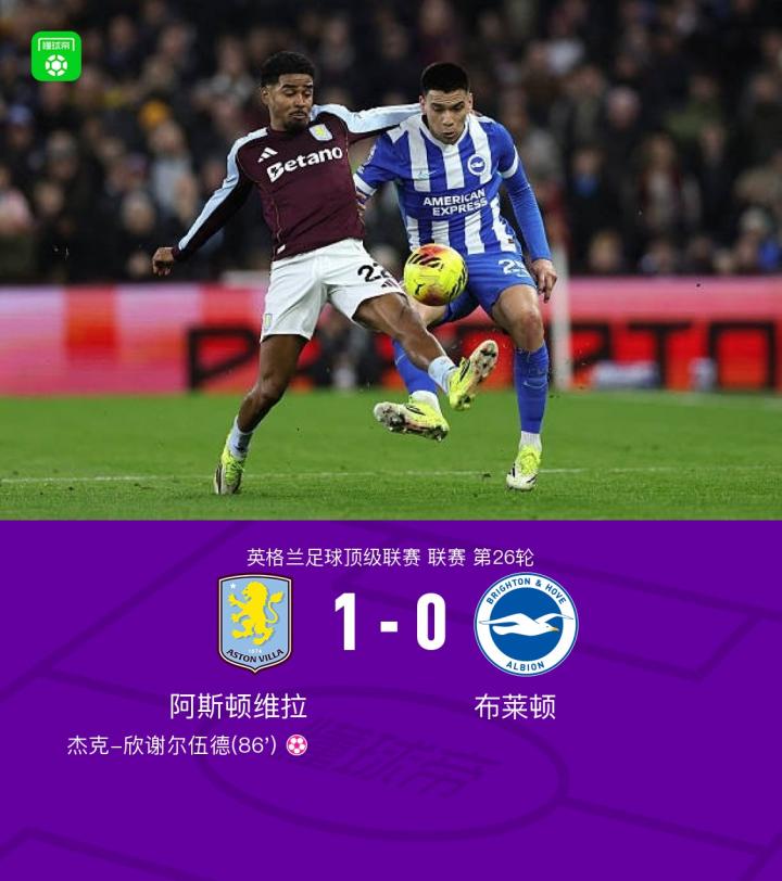 扫描下载懂球帝首页>动态> 维拉1-0绝杀布莱顿,杰克-欣谢尔伍德自摆乌龙