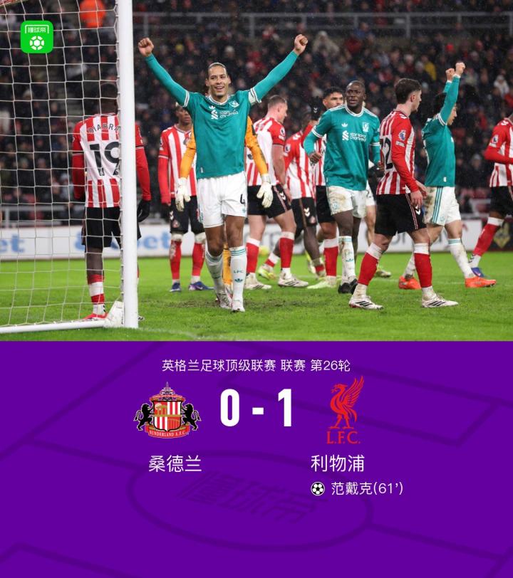 02-12 06:34力压范戴克,维尔茨当选与桑德兰一役利物浦队内最佳球员