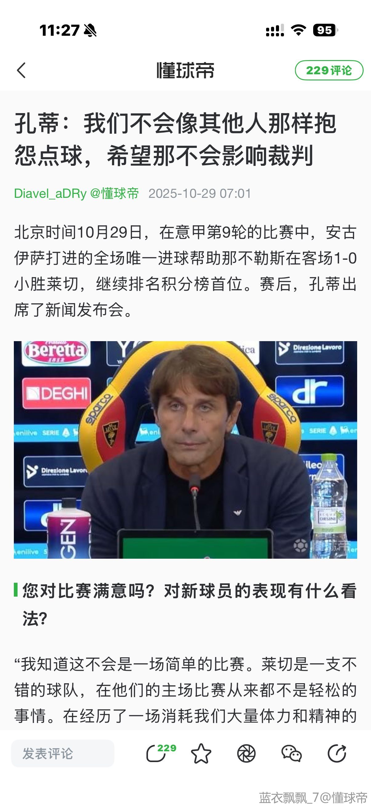 扫描下载懂球帝首页>动态> 罗体:意大利足协在调查孔蒂的言论,他可能被禁赛一场+罚款