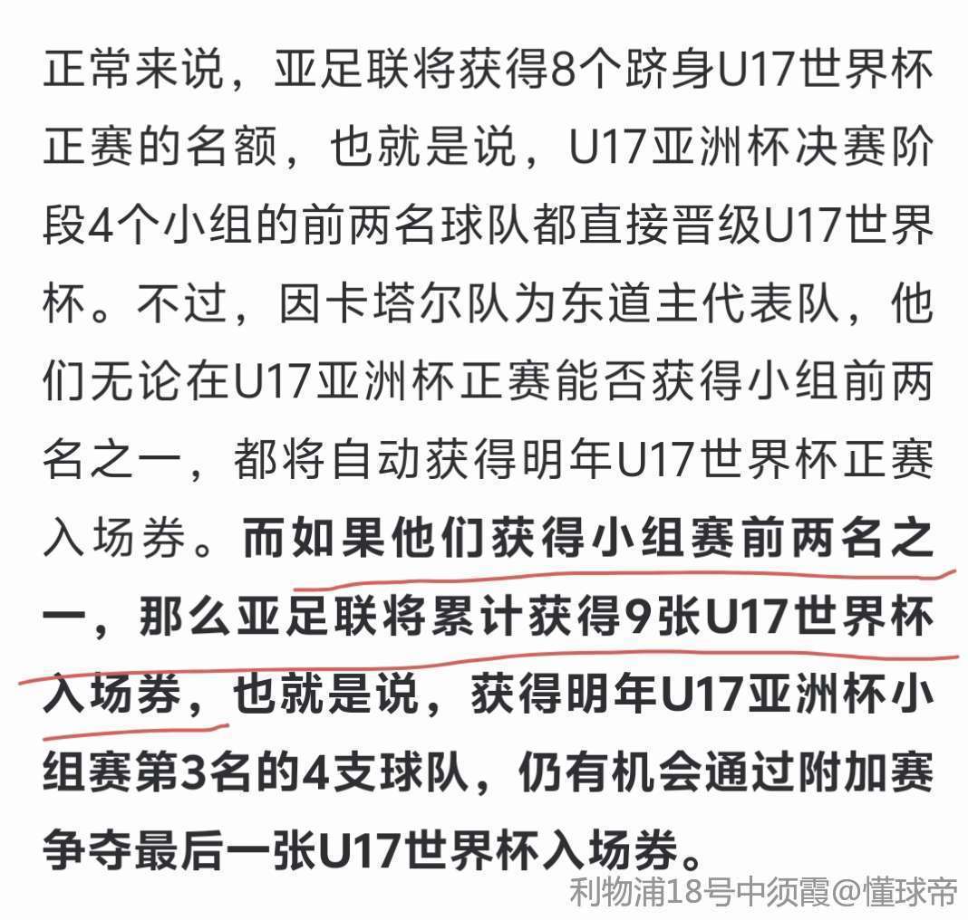 给评论区各位不懂的科普一下,卡塔尔是下届至少赛的东道主,因此本次亚少赛16强有九支晋级世少赛的球队(8支成绩最好的球队+卡塔尔),意思是卡塔尔如果小组出线,4个组的第三名踢附加赛决出最后一个晋级名额。