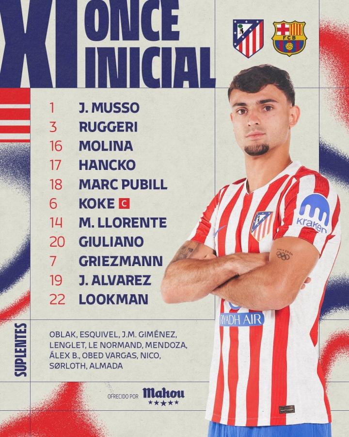 扫描下载懂球帝首页>动态> 马竞vs巴萨:卢克曼、格列兹曼首发,亚马尔、奥尔莫出战