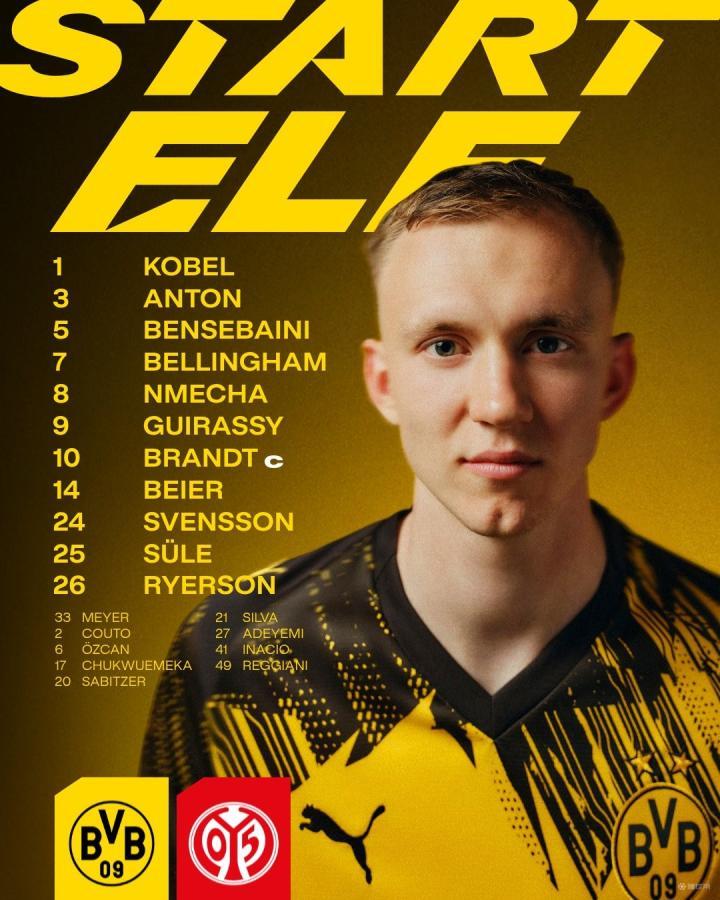 扫描下载懂球帝首页>动态> 多特vs美因茨:吉拉西、布兰特首发,拜尔、恩梅加出战
