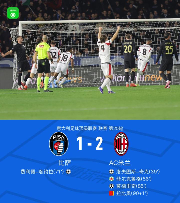 扫描下载懂球帝首页>动态> 剑南春|十人米兰2-1比萨,莫德里奇破门,菲尔克鲁格失点