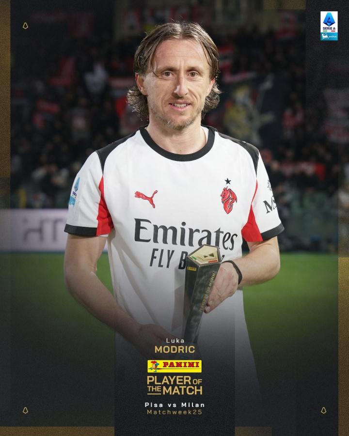 扫描下载懂球帝首页>动态> 攻入制胜进球,莫德里奇当选比萨vs米兰全场最佳