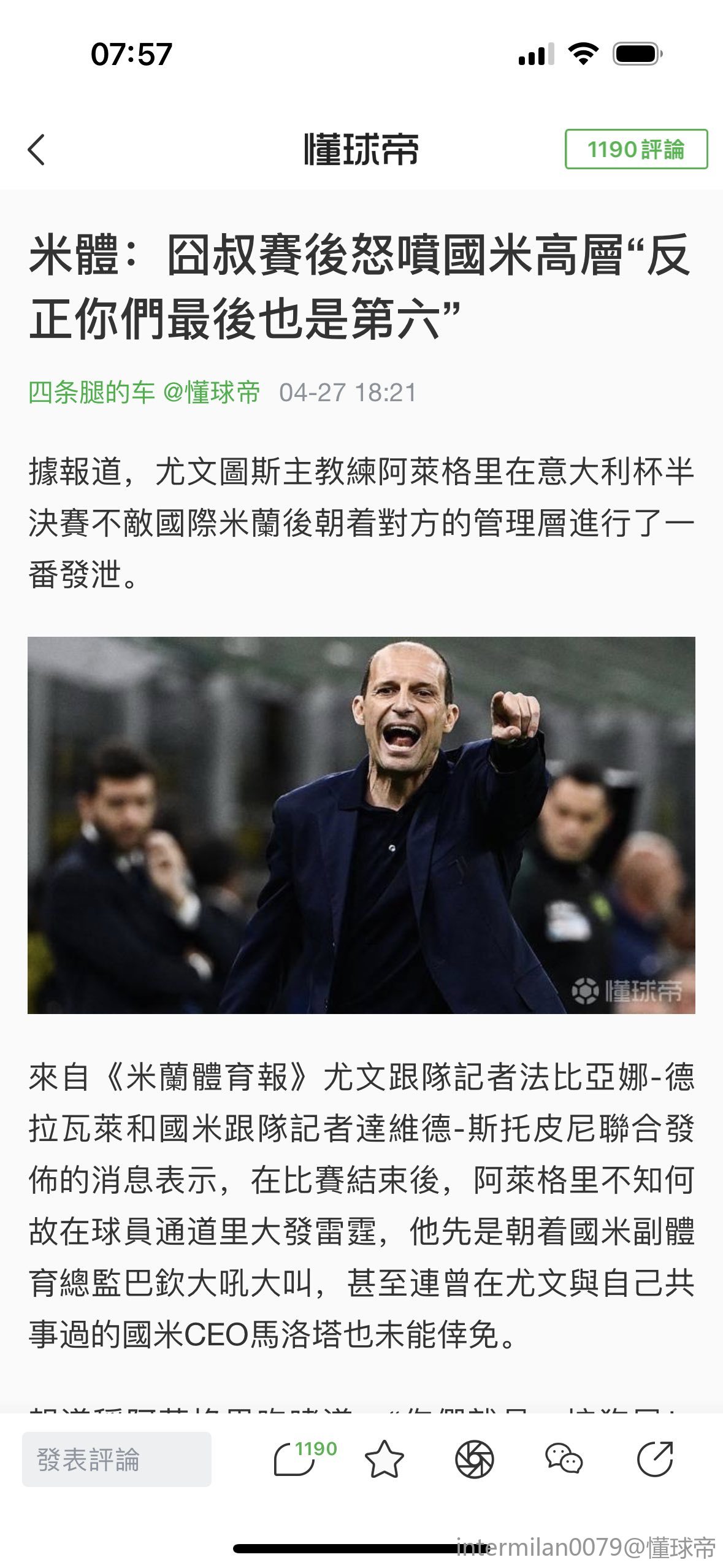 米兰在意甲第25轮客场2-1击败比萨,主教练阿莱格里在赛后接受了DAZN的采访。