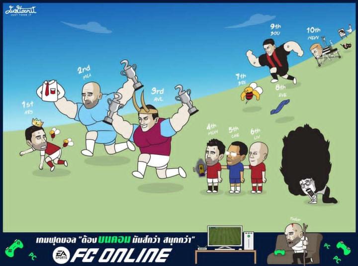 英超第二十六轮赛后总结 EPL Week 26 Cartoon by Kaew Justtoonit, Artist from Thailand.