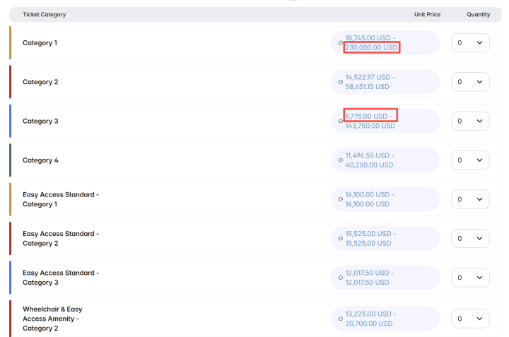 首当其冲的便是备受争议的“动态定价”机制——票价根据比赛关注度和剩余票量实时浮动,已在北美体育联盟中广泛使用。在此系统下,本届世界杯的票价一飞冲天,不光是决赛最低票价高达4,185美元,小组赛最低票价也达到140-265美元,远高于上届卡塔尔世界杯票价,也和当初申办时预期21-230美元的票价区间相去甚远。