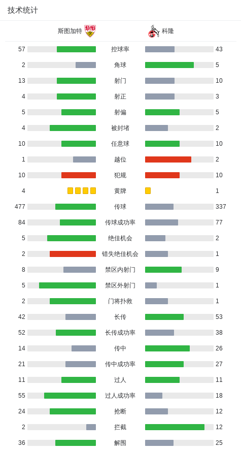 半场战报:斯图加特1-0科隆,德米罗维奇建功