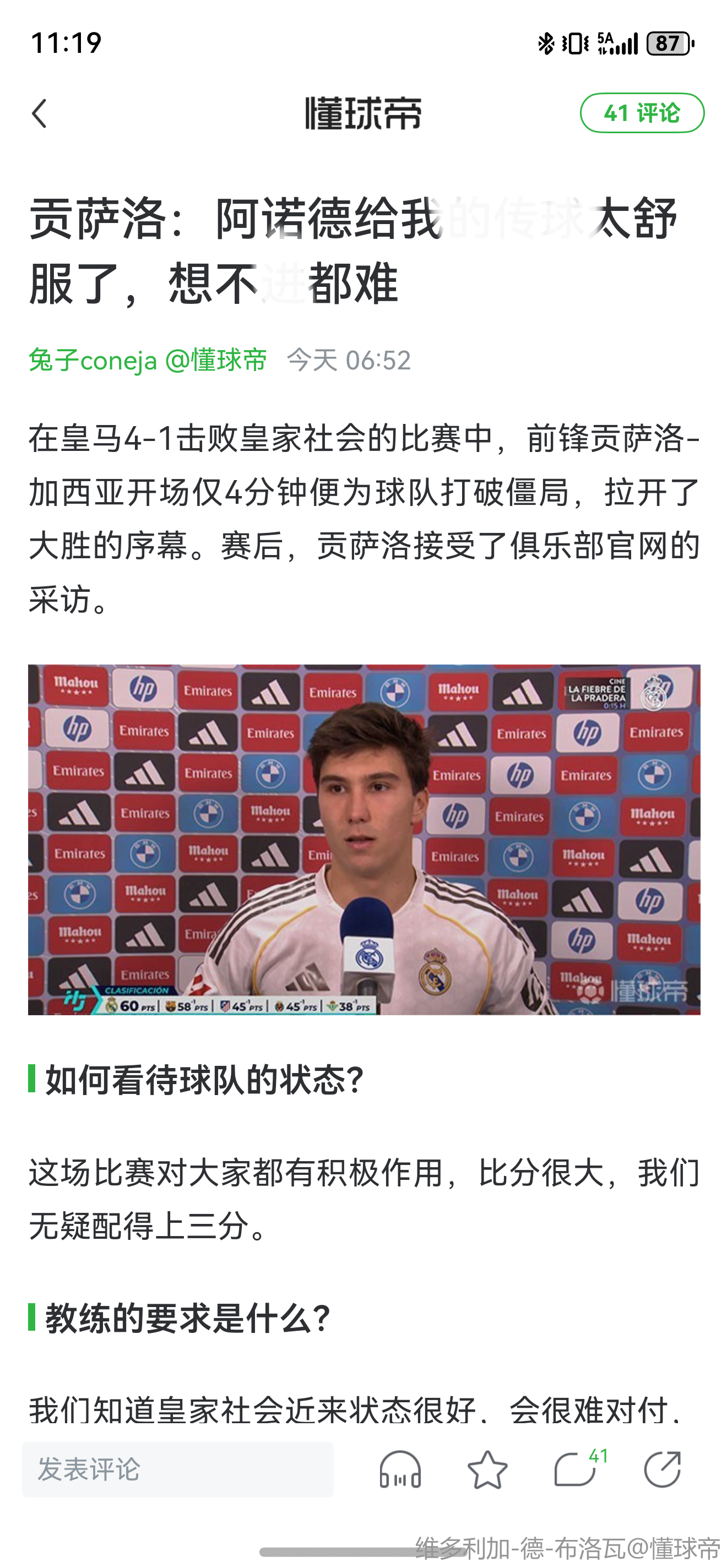 扫描下载懂球帝首页>动态> 贡萨洛:阿诺德给我的传球太舒服了,想不进都难