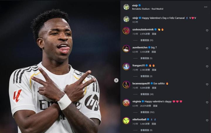 扫描下载懂球帝首页>动态> 维尼修斯社媒庆祝胜利,队友、女友及索博斯洛伊留言支持
