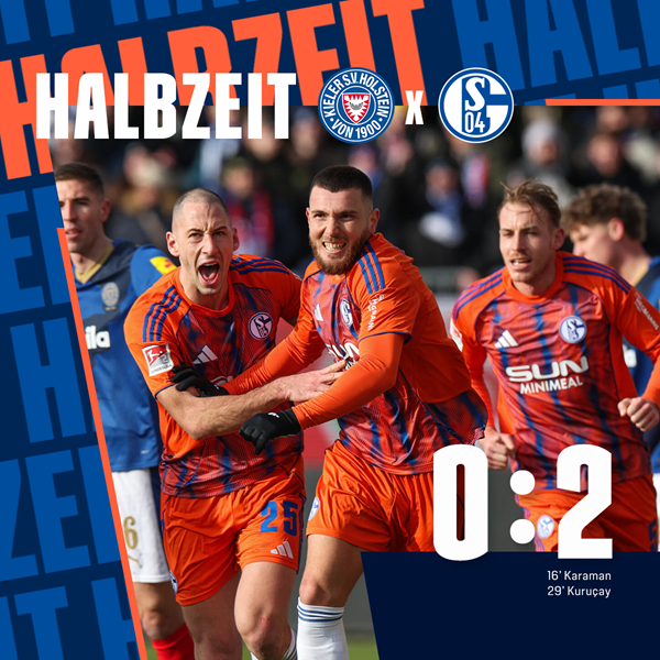 半场结束!! 沙尔克 2-0 荷尔斯泰因基尔 卡拉曼、库鲁凯各进一球 继续保持!