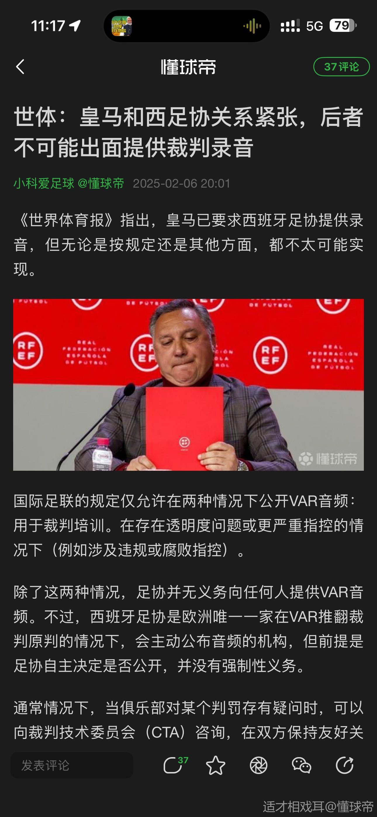 要不让弗里克出来走两步吧 他可是义正言辞的支持裁判 还是说弗里克不能代表巴萨