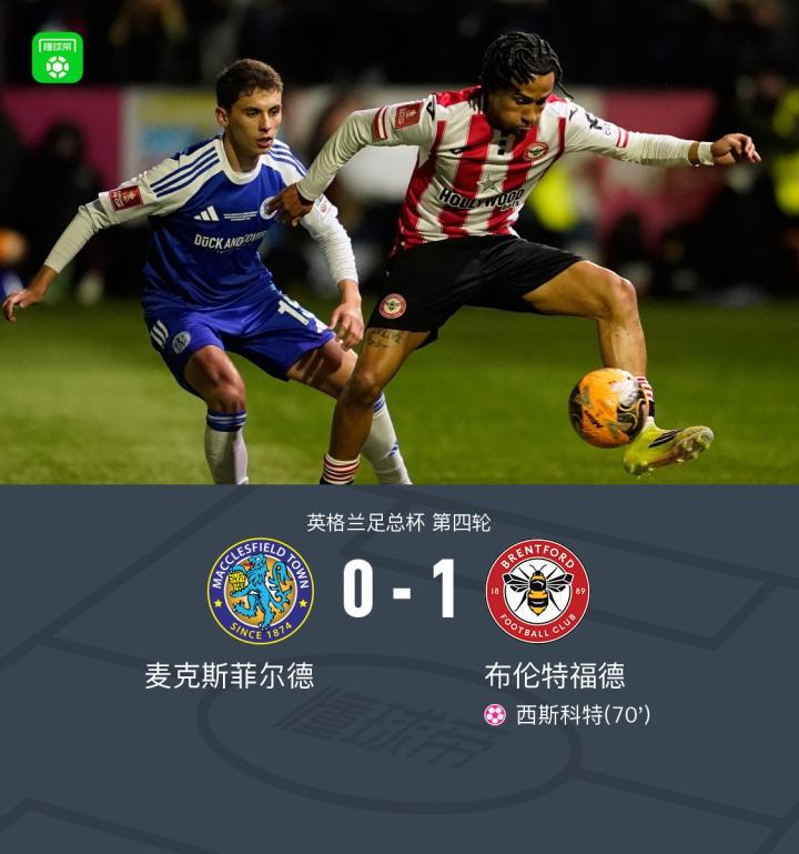 北京时间2月17日,英格兰足总杯第四轮,麦克斯菲尔德对阵布伦特福德。比赛中,西斯科特俯身头球顶入自家球门。最终,布伦特福德1-0小胜麦克斯菲尔德,晋级足总杯16强。