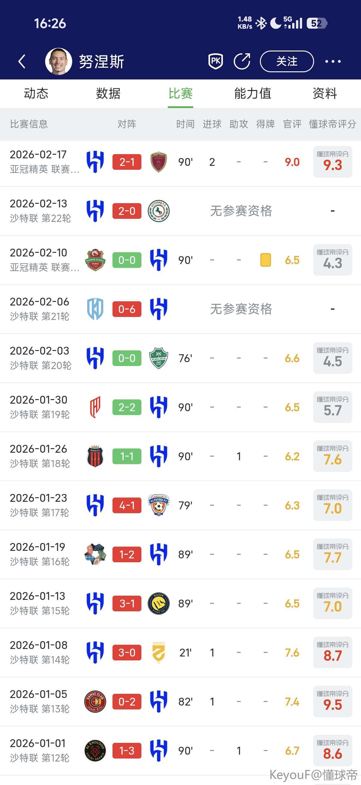 不过,他16场沙特联6球4助攻的数据虽算平稳,却远未达到让利雅得新月非他不可的地步。