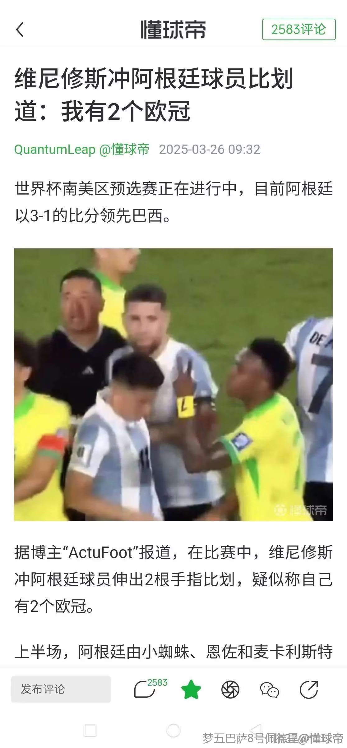 目前来看,至少有画面和对口型能确认维尼修斯确实对普雷斯蒂安尼进行了侮辱性言语,这一点和“被歧视指控”在证据层级上是不一样的。