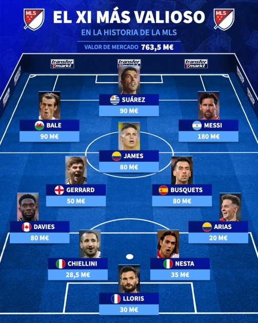 扫描下载懂球帝首页>动态> 德转列美职联球员历史最高身价11人阵容:梅西1.8亿欧元领衔