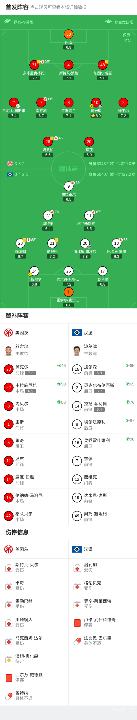 02-21 08:56美因茨 vs 汉堡 比赛动态