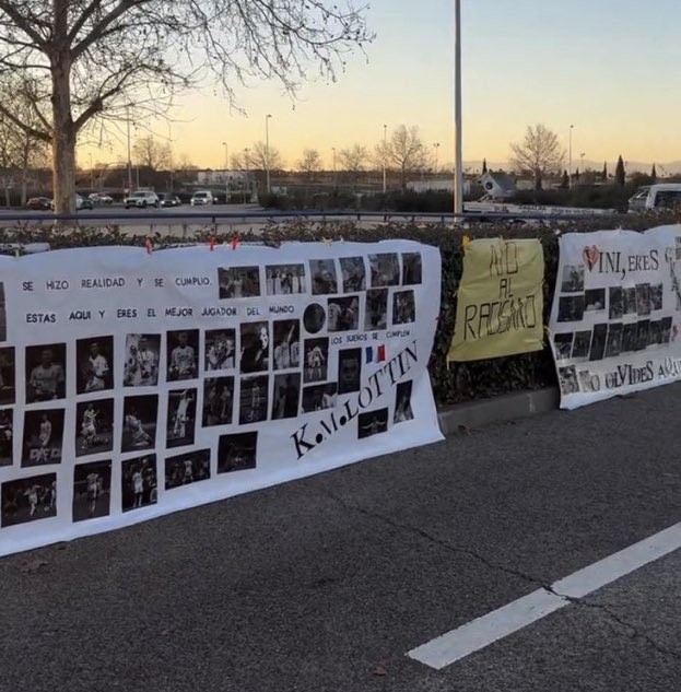 扫描下载懂球帝首页>动态> 皇马球迷拉横幅声援维尼修斯和姆巴佩:我们深爱你们