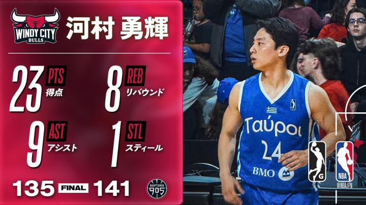 懂球帝首页>动态> 全能身手,河村勇辉G联赛34分钟拿到23分8板9助,三分5中4