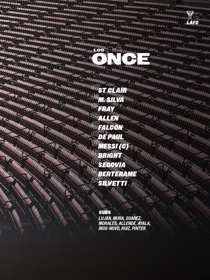 迈阿密国际首发:97-圣克莱尔、32-艾伦、16-米卡埃尔、37-法尔孔、17-弗雷、42-布赖特、7-德保罗、8-塞戈维亚、10-梅西、24-西尔维蒂、19-贝尔泰拉梅