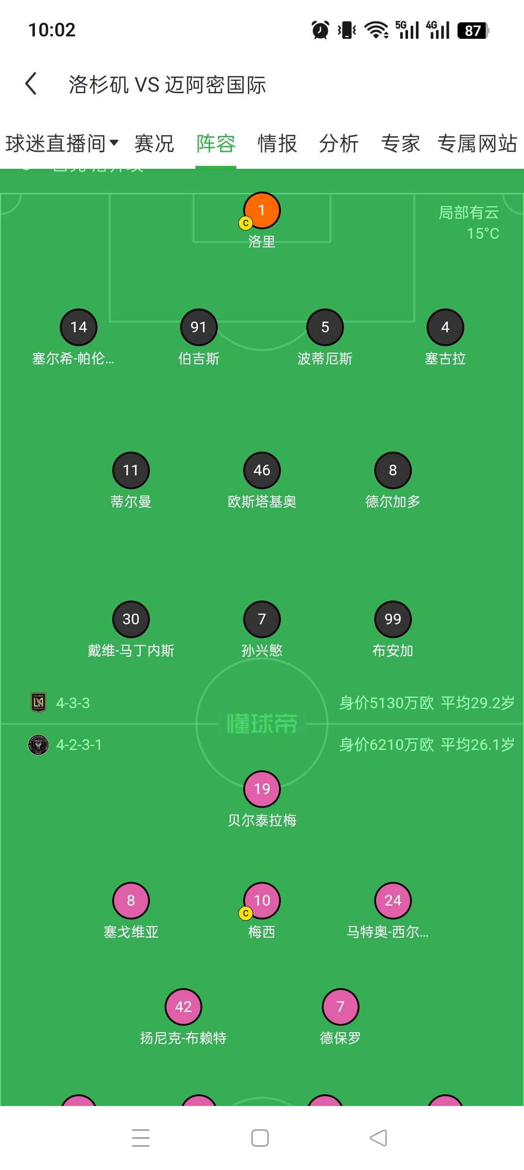 洛杉矶首发:1-洛里、4-塞古拉、5-波蒂厄斯、91-伯吉斯、14-帕伦西亚、8-德尔加多、46-欧斯塔基奥、11-蒂尔曼、99-布安加、7-孙兴慜、30-戴维-马丁内斯
