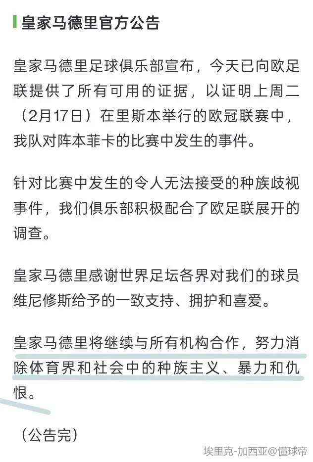 险些成为全dqd头号通缉犯,现在让我们看看冲在反种族歧视第一线的皇马会怎么处理吧