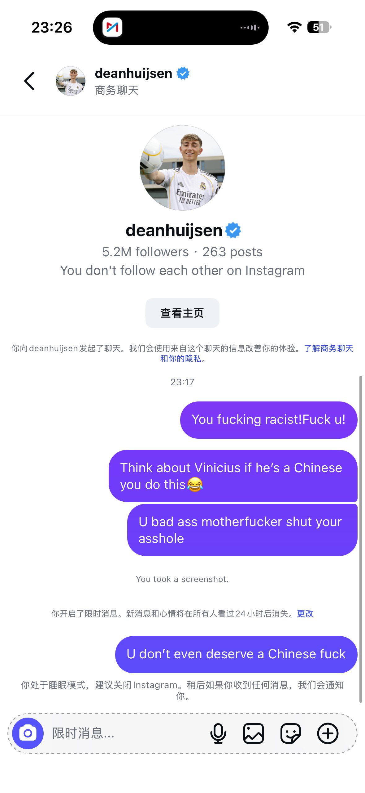 扫描下载懂球帝首页>动态> 皇马后卫赫伊森转发社媒,内容含明显辱华的种族歧视评论
