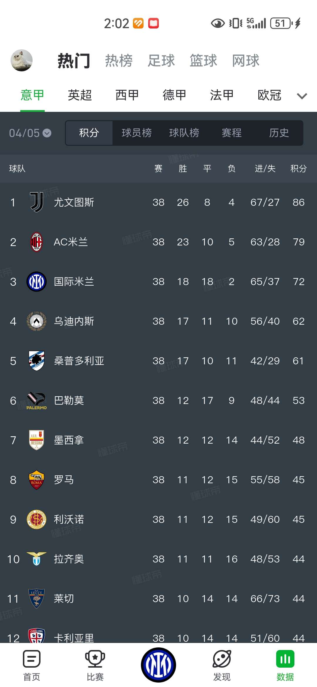 04-05赛季,《不败,强强对话可以,拿不下弱队》和今年的AC米兰何其相似,国际胜平尤文,罗马,拉齐奥,平负了一场米兰,最后还输了个墨西拿。起码我作为国米球迷,我是认可球星层次和建队三线平衡度是不如尤文图斯和AC米兰的,我们也没天天嘴上还想着夺冠,还天天马洛塔联赛的吧。起码图上看,北三的进攻火力是完全五五开的,而今年你们首先要正视的是自己在各种进攻端统计的不足,再赖马洛塔,创造进攻威胁数都只有小国际的一半。等到水平差不多的时候,再谈马洛塔行吗?