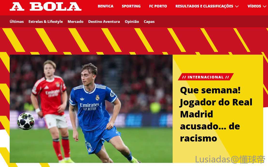 葡媒误发了,涉嫌种族歧视的只有本菲卡球员,没有皇马球员