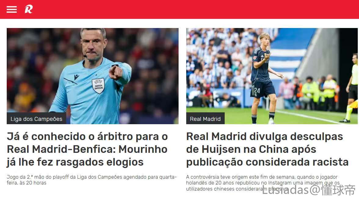 阿斯:赫伊森社媒辱华事件引众怒,皇马非首次卷入类似风波