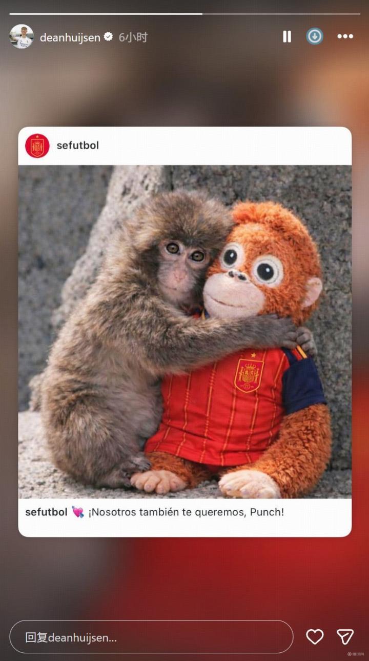 扫描下载懂球帝首页>动态> 个人账号仍未道歉,赫伊森更新社媒转发西班牙官方关爱日本小猴内容