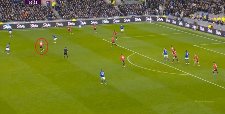 在没有固定且典型的中锋角色的情况下,曼联实际上是在用跑动牵制对手,从而绕进两线之间: