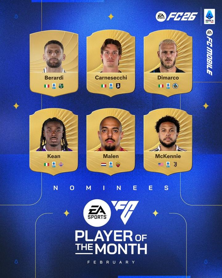 扫描下载懂球帝首页>动态> 意甲2月最佳球员候选:迪马尔科、马伦、麦肯尼入围