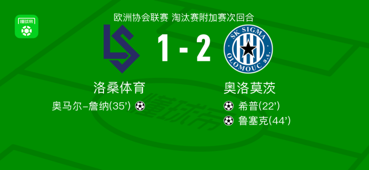 北京时间2月27日欧洲协会联赛 淘汰赛附加赛次回合,洛桑体育对阵奥洛莫茨。洛桑体育奥马尔-詹纳破门。奥洛莫茨希普破门,鲁塞克破门。最终比分洛桑体育 1-2 奥洛莫茨。两回合总比分洛桑体育2-3奥洛莫茨。