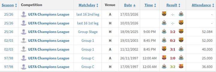 1/8决赛再相遇,巴萨本赛季欧冠联赛阶段已2-1击败过纽卡