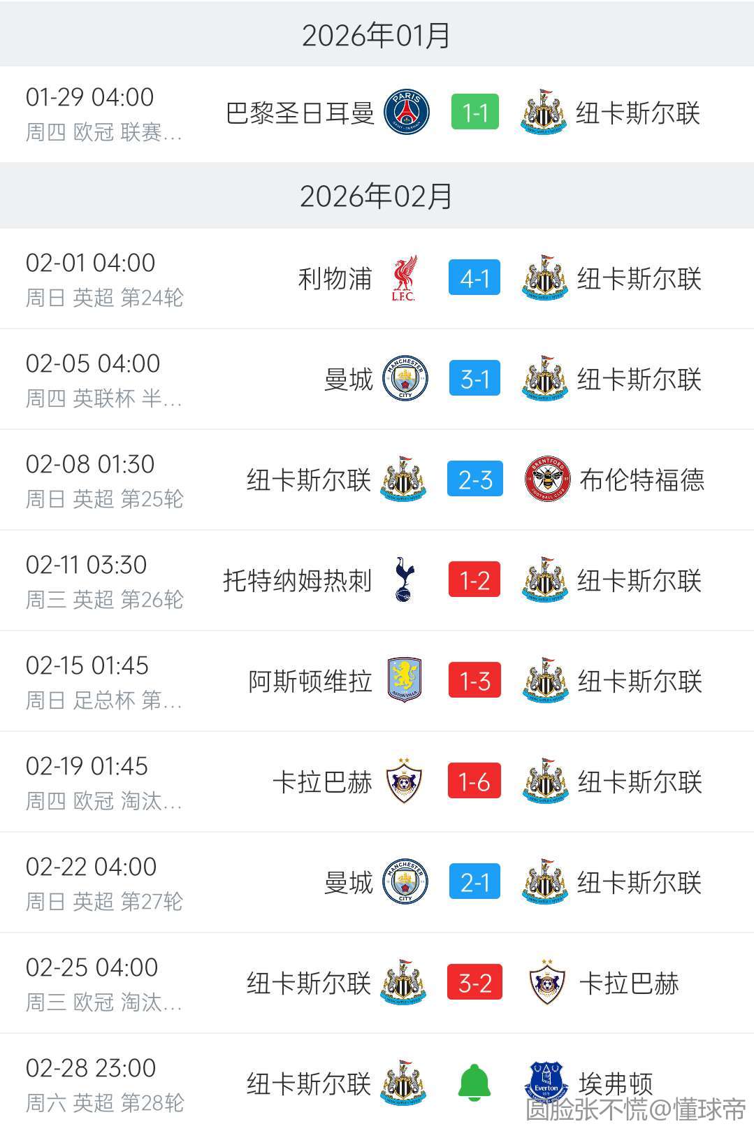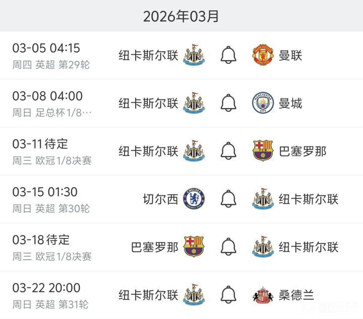 更别提纽卡二月还踢了九场比赛了。。