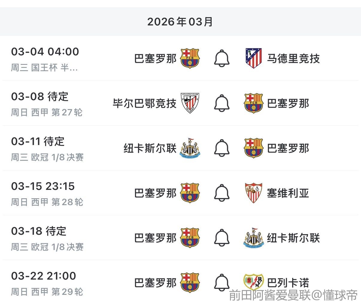 02-27 19:381/8决赛再相遇,巴萨本赛季欧冠联赛阶段已2-1击败过纽卡