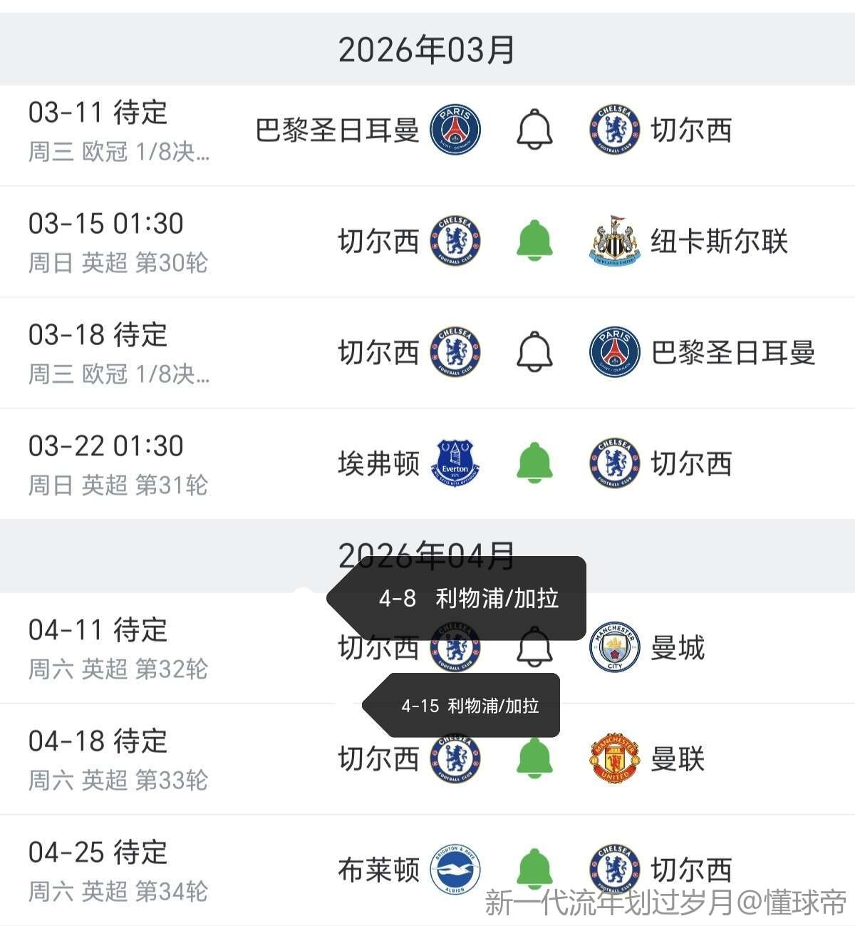 去看看切尔西的赛程吧。。。