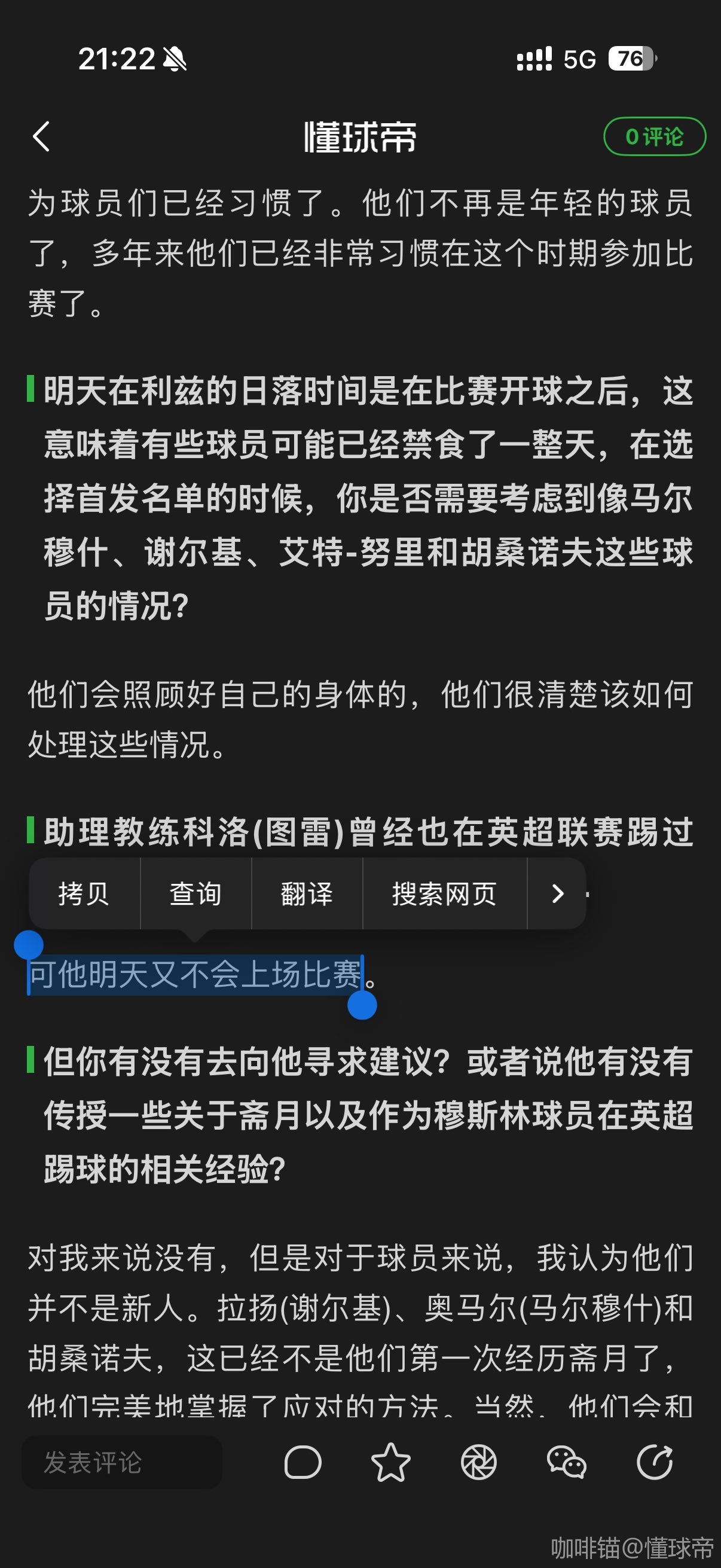 但你有没有去向他寻求建议?或者说他有没有传授一些关于斋月以及作为穆斯林球员在英超踢球的相关经验?