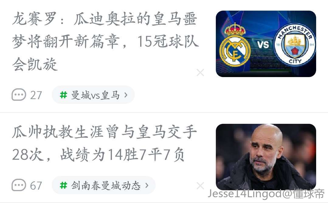 希望皇马淘汰曼城,进1/4决赛,让我仁用大比分淘汰皇马