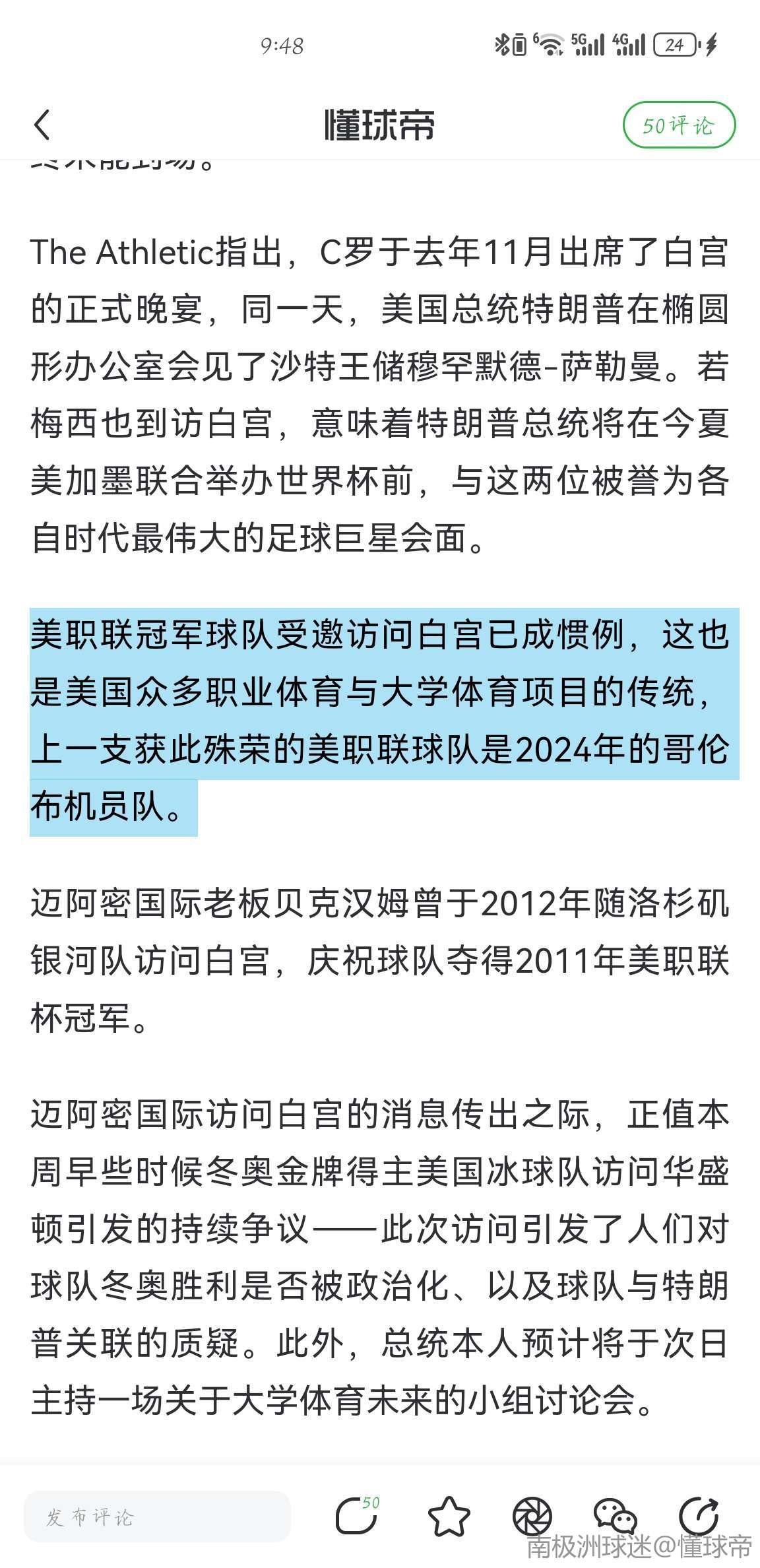 球队去白宫在美国见总统其实是个传统。而且能推动美国足球发展。