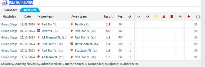 另外,在塞尔维亚国青队也是跳级打,U16-U19共出场了20次,打进8球4助攻。