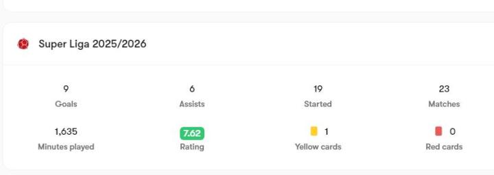 终结能力(强): 作为红星4231阵型的前腰,科斯托夫超过50%的射正率,表明他射门技术的精湛,具备出色的后插上得分能力。
