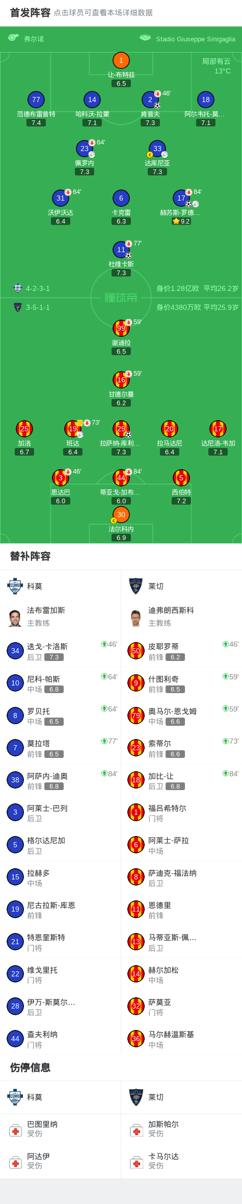 懂球帝首页>动态> 科莫3-1逆转莱切,肯普夫、赫苏斯-罗德里格斯破门