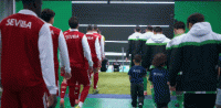 第1分钟,双方球员步入赛场,比赛即将打响