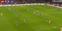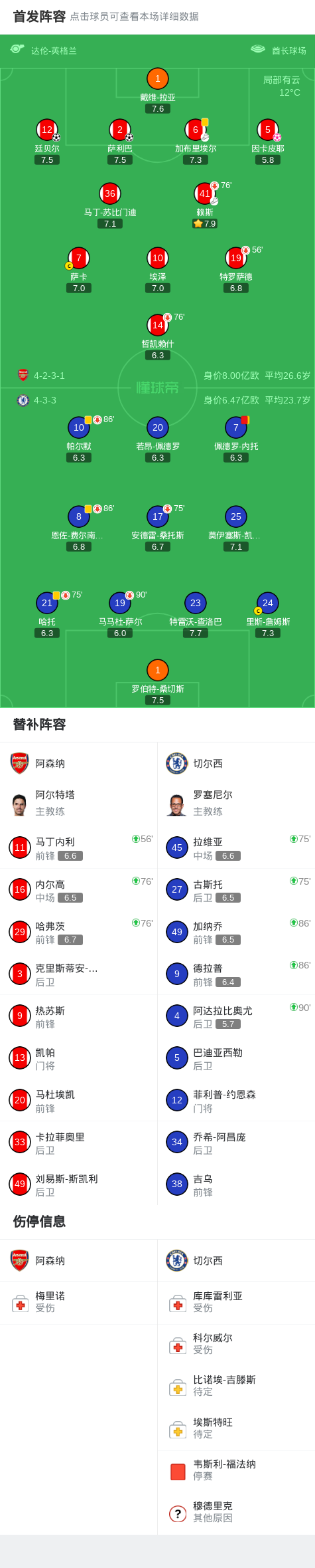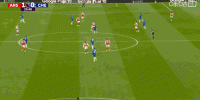 第12分钟,有点危险!桑切斯横传,萨尔停球遭到萨卡逼抢